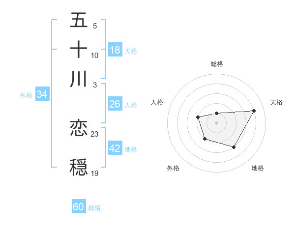 五十川 恋穏さんの総格は60画の1点!