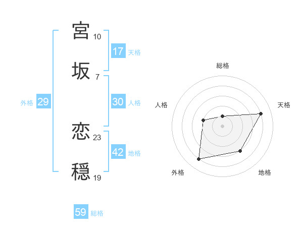 宮坂 恋穏さんを姓名の画数から五運を鑑定