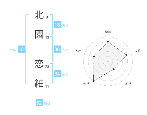 北園 恋紬さんの総格は52画の4点!