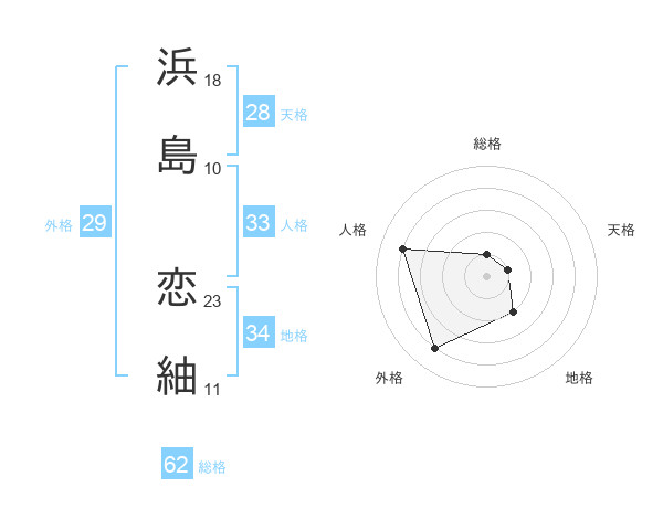 浜島 恋紬さんの総格は62画の1点!