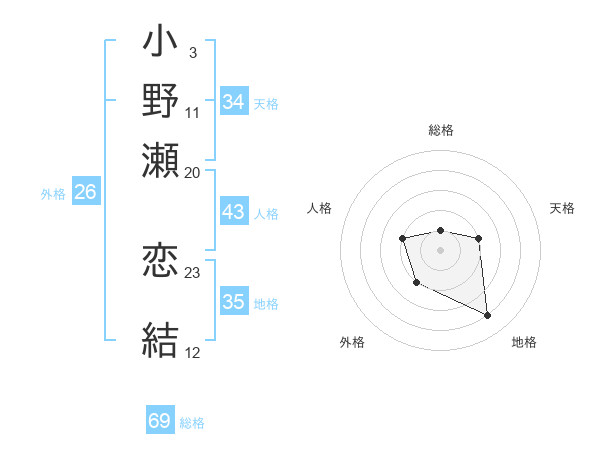 小野瀬 恋結さんを姓名の画数から五運を鑑定