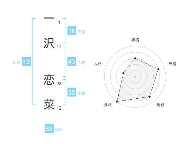 一沢 恋菜さんを姓名の画数から五運を鑑定