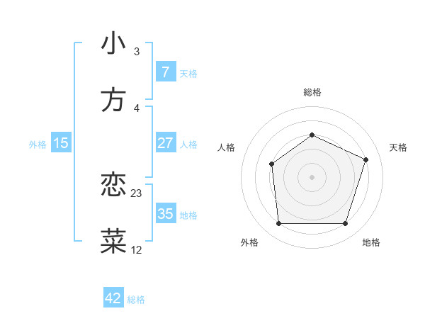 小方 恋菜さんを姓名の画数から五運を鑑定