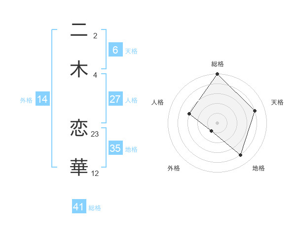 二木 恋華さんの総格は41画の5点!