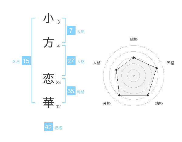 占い結果は姓名判断である以上、良い場合も悪い場合もありますが、決してお名前を誹謗中傷するものでなく、画数の自動計算によって得られたものです。また、本サイトの検索によって得られた鑑定結果で、第三者を誹謗中傷したり名誉を棄損するような行為を禁じます。