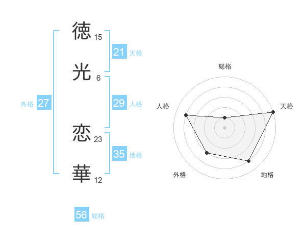 徳光 恋華さんの天格は21画の5点!