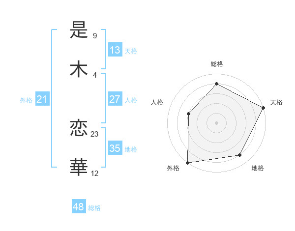 是木 恋華さんの天格は13画の5点!