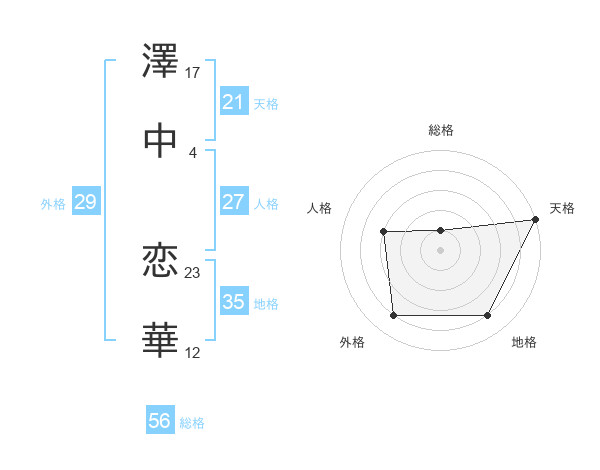 澤中 恋華さんを姓名の画数から五運を鑑定