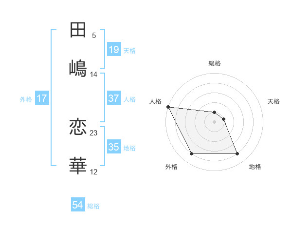 田嶋 恋華さんを姓名の画数から五運を鑑定