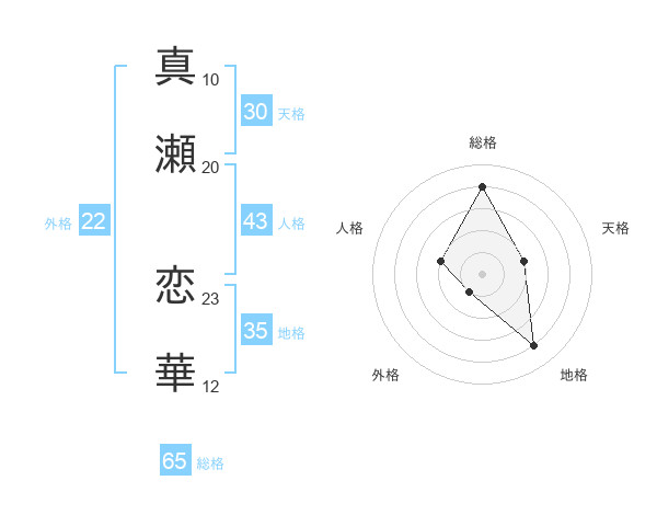 真瀬 恋華さんの総格は65画の4点!
