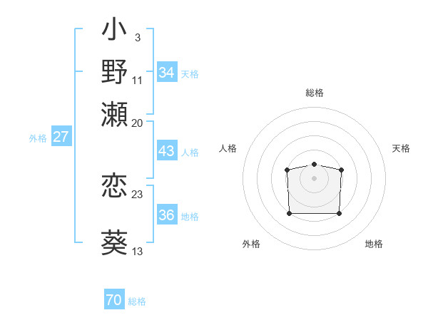 小野瀬 恋葵さんを姓名の画数から五運を鑑定