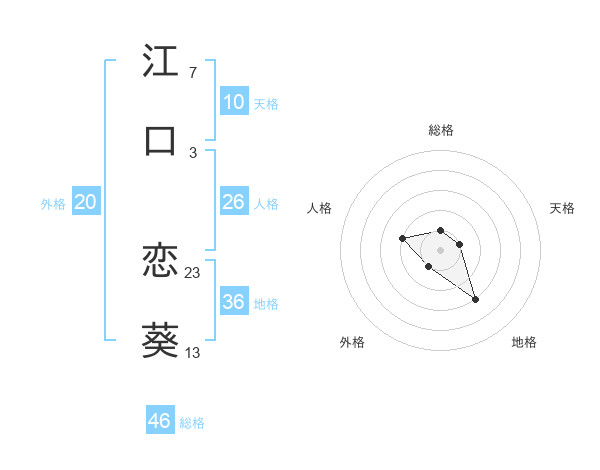 江口 恋葵さんの総格は46画の1点!
