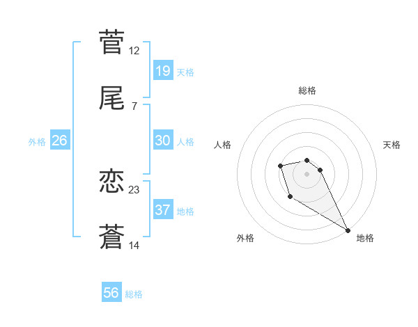 菅尾 恋蒼さんの地格は37画の5点!