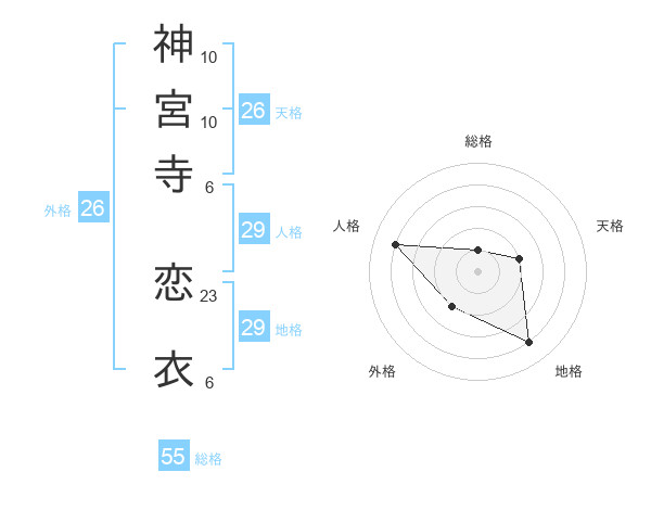神宮寺 恋衣さんの総格は55画の1点!