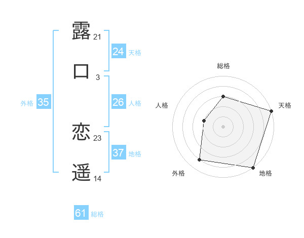 露口 恋遥さんの総格は61画の3点!