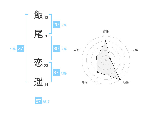 飯尾 恋遥さんの総格は57画の4点!