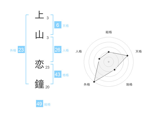 上山 恋鐘さんを姓名の画数から五運を鑑定