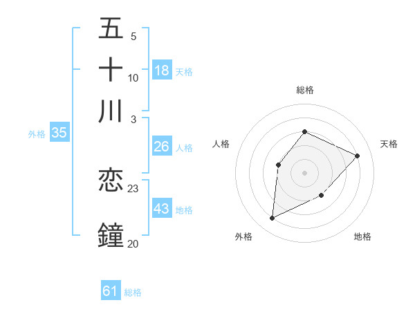 五十川 恋鐘さんを姓名の画数から五運を鑑定