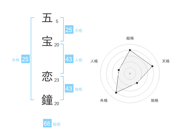 五宝 恋鐘さんの天格は25画の4点!