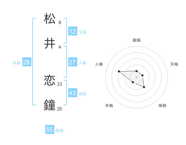 松井 恋鐘さんを姓名の画数から五運を鑑定