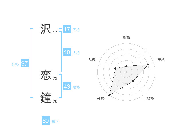 沢 恋鐘さんの外格は37画の5点!