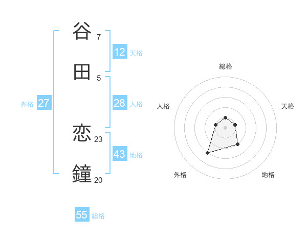 谷田 恋鐘さんを姓名の画数から五運を鑑定