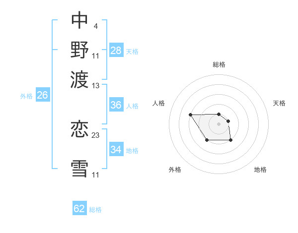 中野渡 恋雪さんを姓名の画数から五運を鑑定