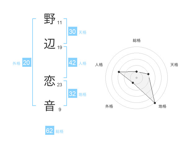 野辺 恋音さんを姓名の画数から五運を鑑定