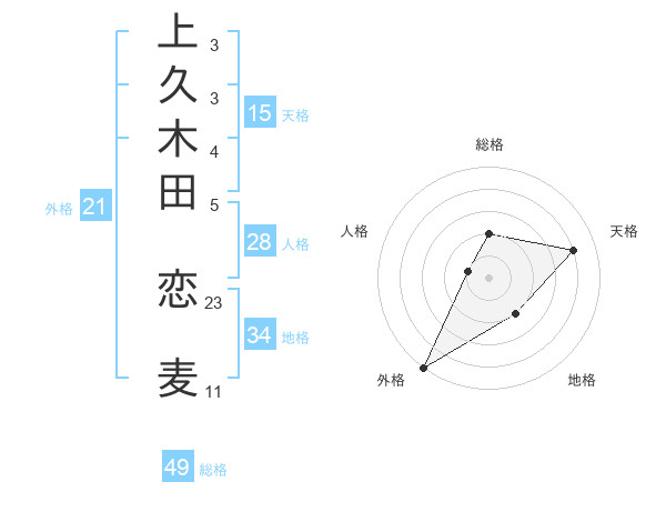 上久木田 恋麦さんを姓名の画数から五運を鑑定