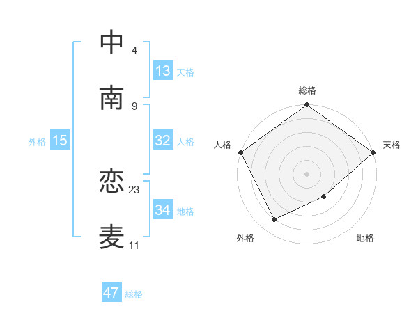 中南 恋麦さんの総格は47画の5点!