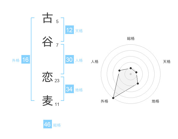古谷 恋麦さんを姓名の画数から五運を鑑定