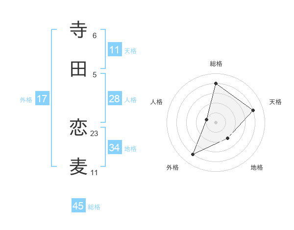 寺田 恋麦さんを姓名の画数から五運を鑑定