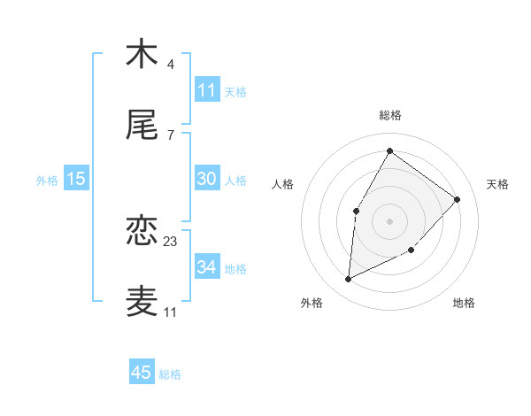 木尾 恋麦さんを姓名の画数から五運を鑑定