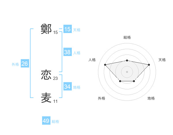 鄭 恋麦さんを姓名の画数から五運を鑑定