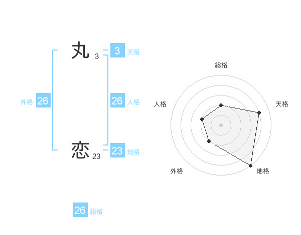 丸 恋さんの総格は26画の2点!