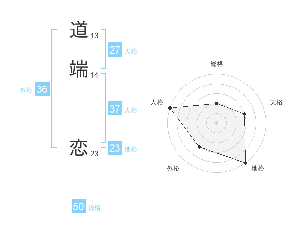 道端 恋さんの総格は50画の2点!