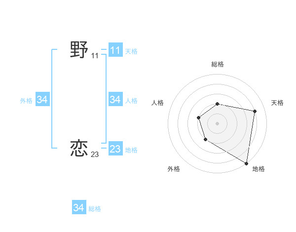 野 恋さんの総格は34画の2点!