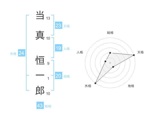 当真 恒一郎さんの総格は43画の2点!