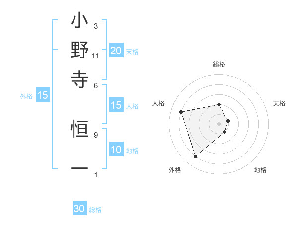 小野寺 恒一さんを姓名の画数から五運を鑑定