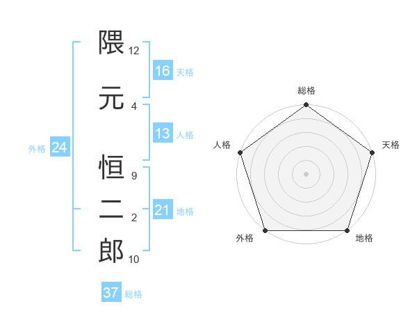 隈元 恒二郎さんの地格は21画の5点!