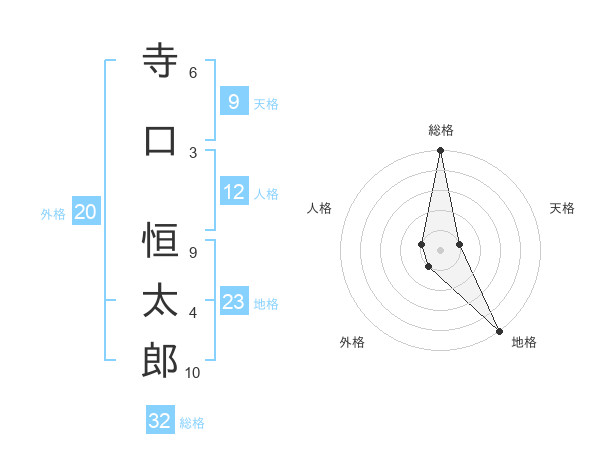 寺口 恒太郎さんの総格は32画の5点!