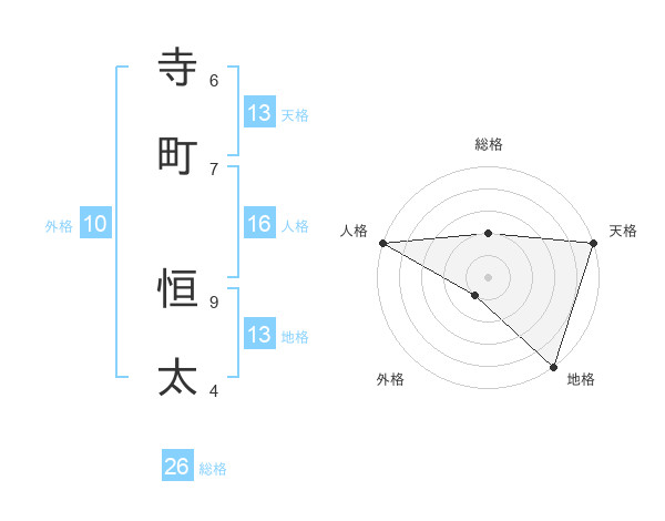 寺町 恒太さんを姓名の画数から五運を鑑定