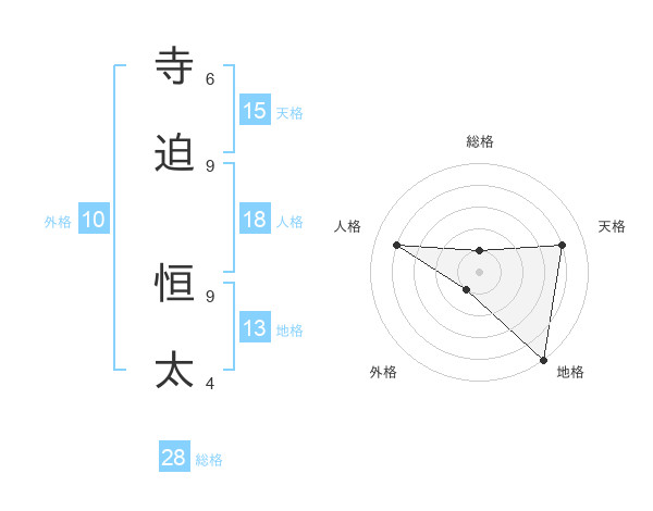 寺迫 恒太さんの天格は15画の4点!