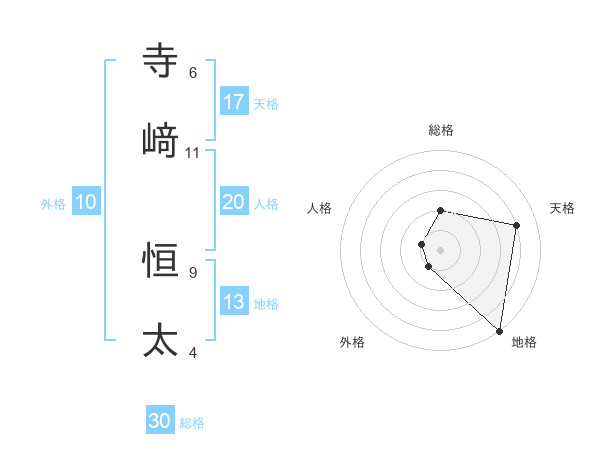 寺﨑 恒太さんの天格は17画の4点!