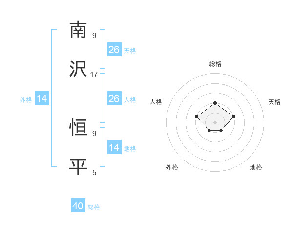 南沢 恒平さんを姓名の画数から五運を鑑定