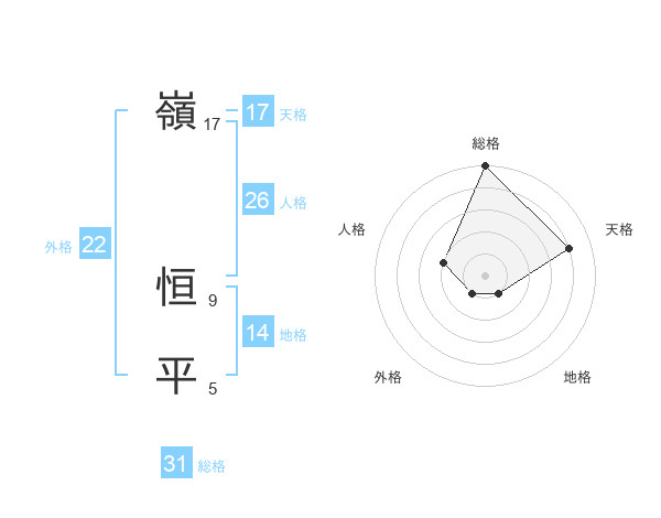 嶺 恒平さんの天格は17画の4点!