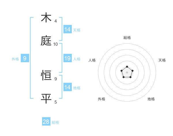 木庭 恒平さんの総格は28画の1点!