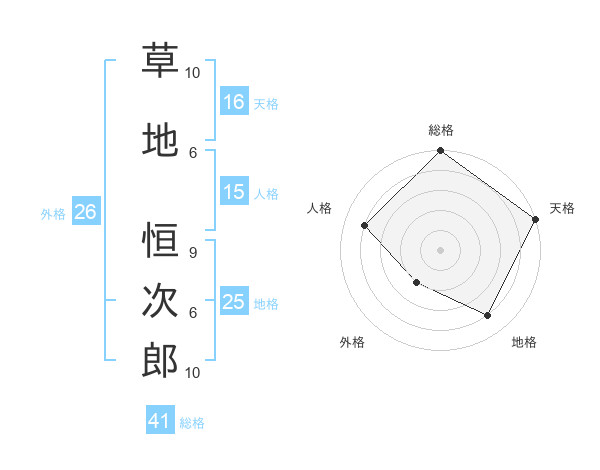 草地 恒次郎さんの総格は41画の5点!