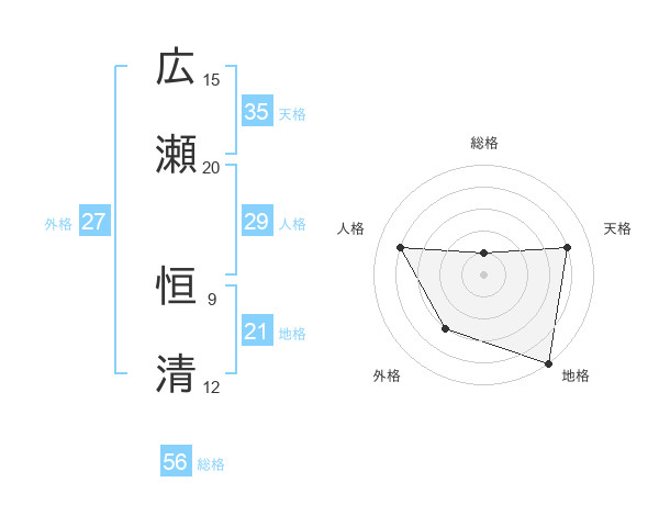 広瀬 恒清さんを姓名の画数から五運を鑑定