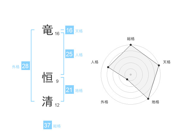 竜 恒清さんの総格は37画の5点!
